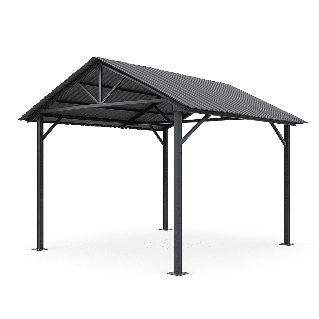 В зависимости от назначения и квадратуры проекта мы предлагаем изготовление навесов уличных из профильной трубы, металлокаркаса, поликарбоната или металлочерепицы. При этом учитываются нагрузка, ветровая зона, уклон кровли и особенности основания.