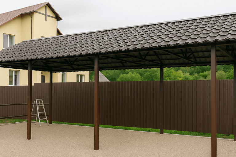Изготовление навесов требует точного подхода к расчетам, подбору материалов и соблюдению строительных норм. Мы предлагаем осуществление полного цикла работ — от ориентировочного расчета до монтажа навеса на участке.