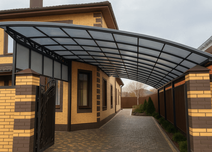 Навес для автомобиля из поликарбоната — это легкая, но прочная конструкция, которая требует точного соблюдения технологии и грамотного подхода к выбору материалов. Изготовление навесов для автомобилей из поликарбоната начинается с проектирования и расчета нагрузки, учитывая климатические особенности региона и площади будущего объекта.